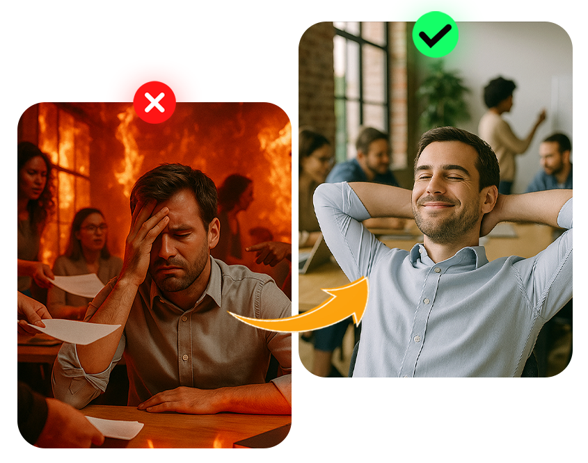❌ Continuar sobrecarregado porque ninguém resolve nada sozinho e ainda entrega o mínimo.